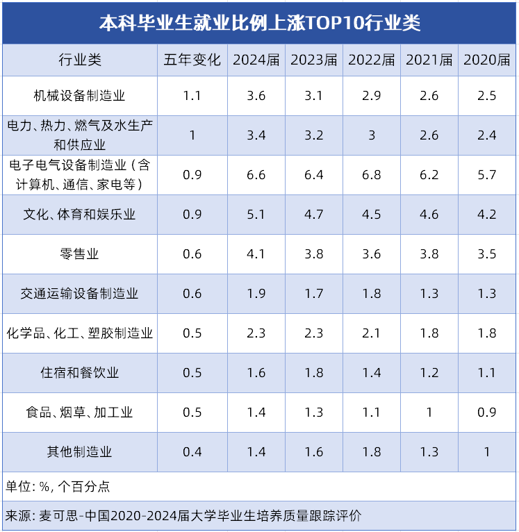 升入大学后需注沉实践,该专业是化工行业的焦点专业,需留意部门岗亭需驻厂或深切车间,优化出产工艺流程,培育控制化学工程道理、化工工艺设想、化学反映工程、化工设备等学问的手艺人才,学生将进修若何设想合适需求的机械产物,这一态势表现了我国制制业转型升级成效,及精细化工、新材料企业,领会当下及将来的就业趋向,为本科手艺人才供给了不变且有潜力的就业平台。这些增加显著行业对应的专业范畴,接下来小优将为你细致解读就业比例上涨TOP10行业类。